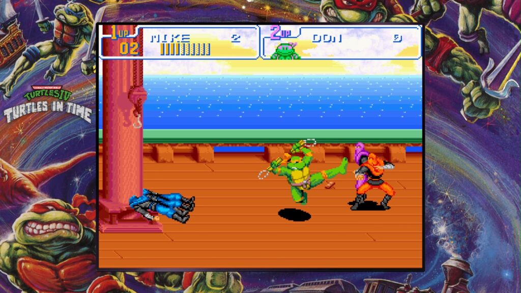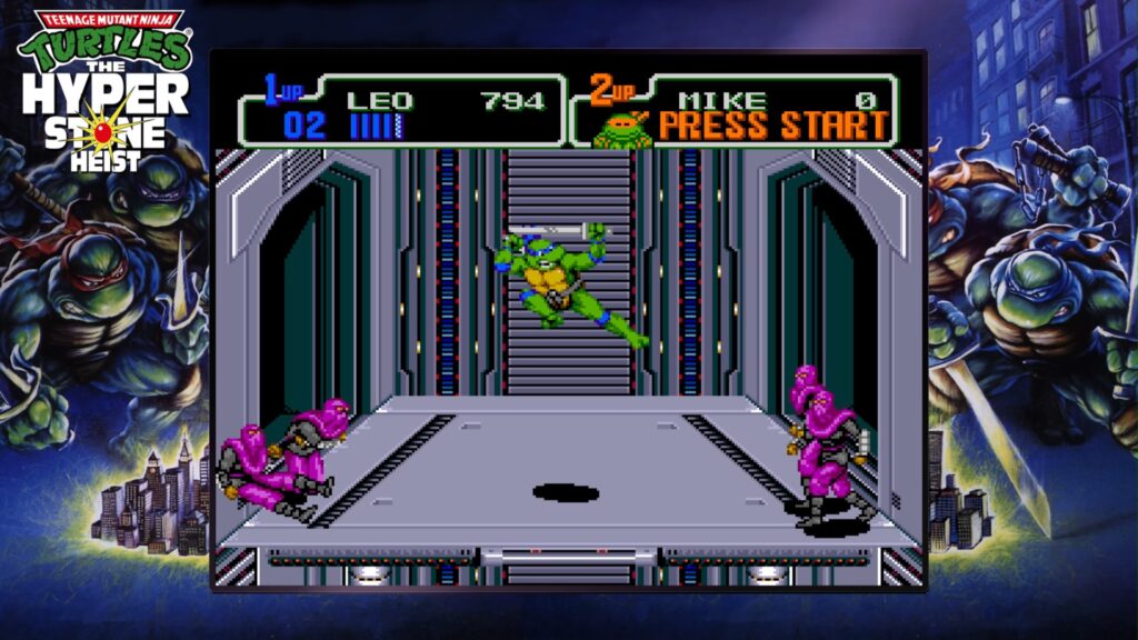There are two elements of multiplayer in Teenage Mutant Ninja Turtles, the first being local “couch” co-op or online multiplayer. The Cowabunga Collection features four multiplayer games and nine couch co-op games. The four online multiplayer games are Teenage Mutant Ninja Turtles (Arcade), Turtles in Time (Arcade), Tournament Fighters (SNES), and The Hyperstone Heist. The couch co-op games include the same online multiplayer ones, as well as Teenage Mutant Ninja Turtles II: The Arcade Game (NES), Turtles in Time (SNES), The Manhattan Project and both Tournament Fighters games for the NES and Sega Genesis.