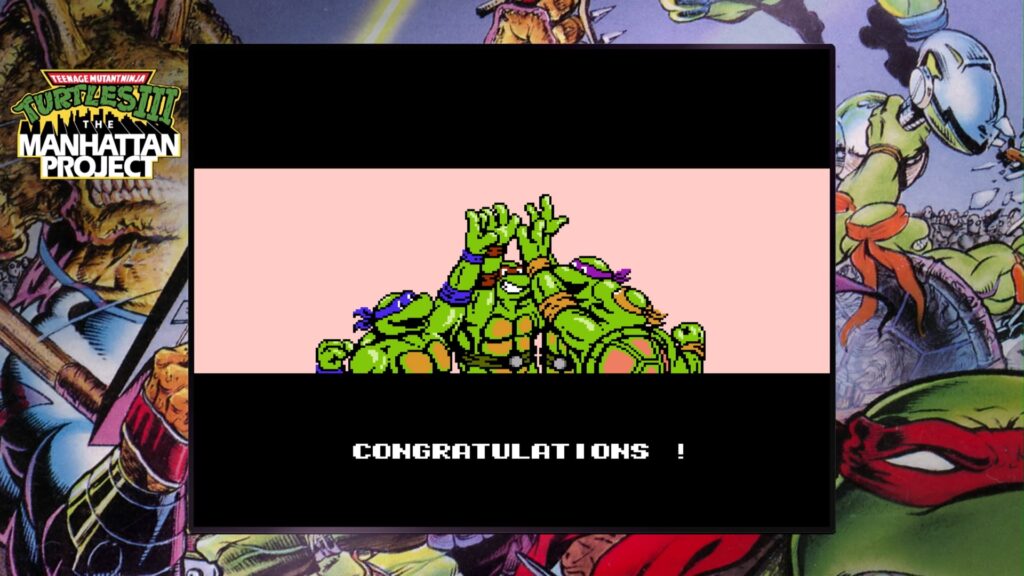 While the optimal way to play these TMNT classics are obviously on their original hardware, for younger or modern-oriented gamers who don’t own older consoles, and have never played these games previously, Digital Eclipse has provided a great service in keeping these titles alive for the next generation of gamers and Ninja Turtle fans. The compilation even has a virtual “Turtles’ Lair,” where you can find the retro videogame packaging, original instruction manuals for The Cowabunga Collection’s games, stills from the various TMNT animated series, comic book covers, and even concept art for the games. Digital Eclipse should be applauded for helping to preserve gaming and Teenage Mutant Ninja Turtle history.