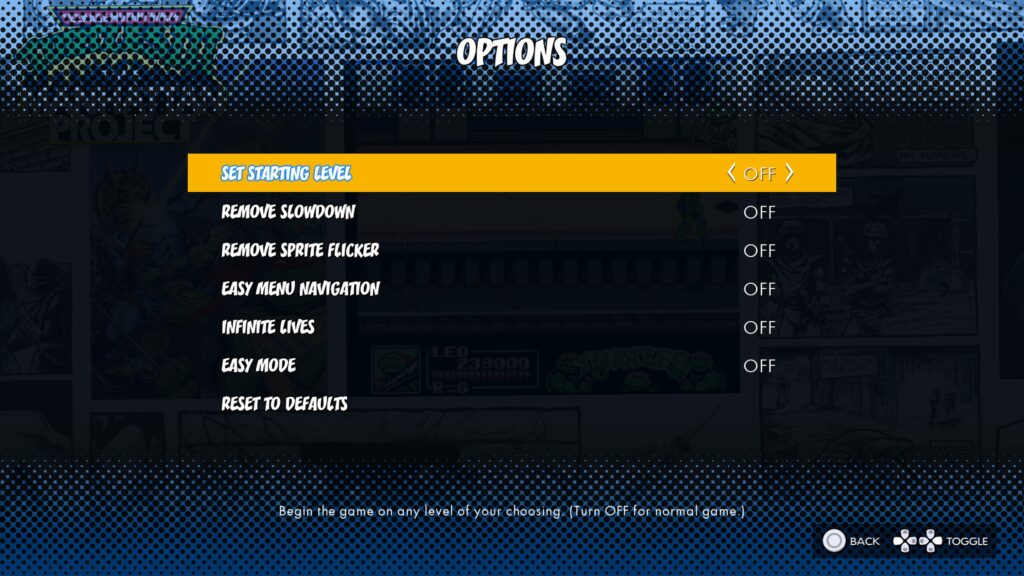 Aside from the aforementioned difficulty settings, The Cowabunga Collection has a variety of customization options to appeal to the modern gamer. These include control remapping, adjusting the size of the screen to decrease the size of borders, removing sprite flicker, level select, etc.