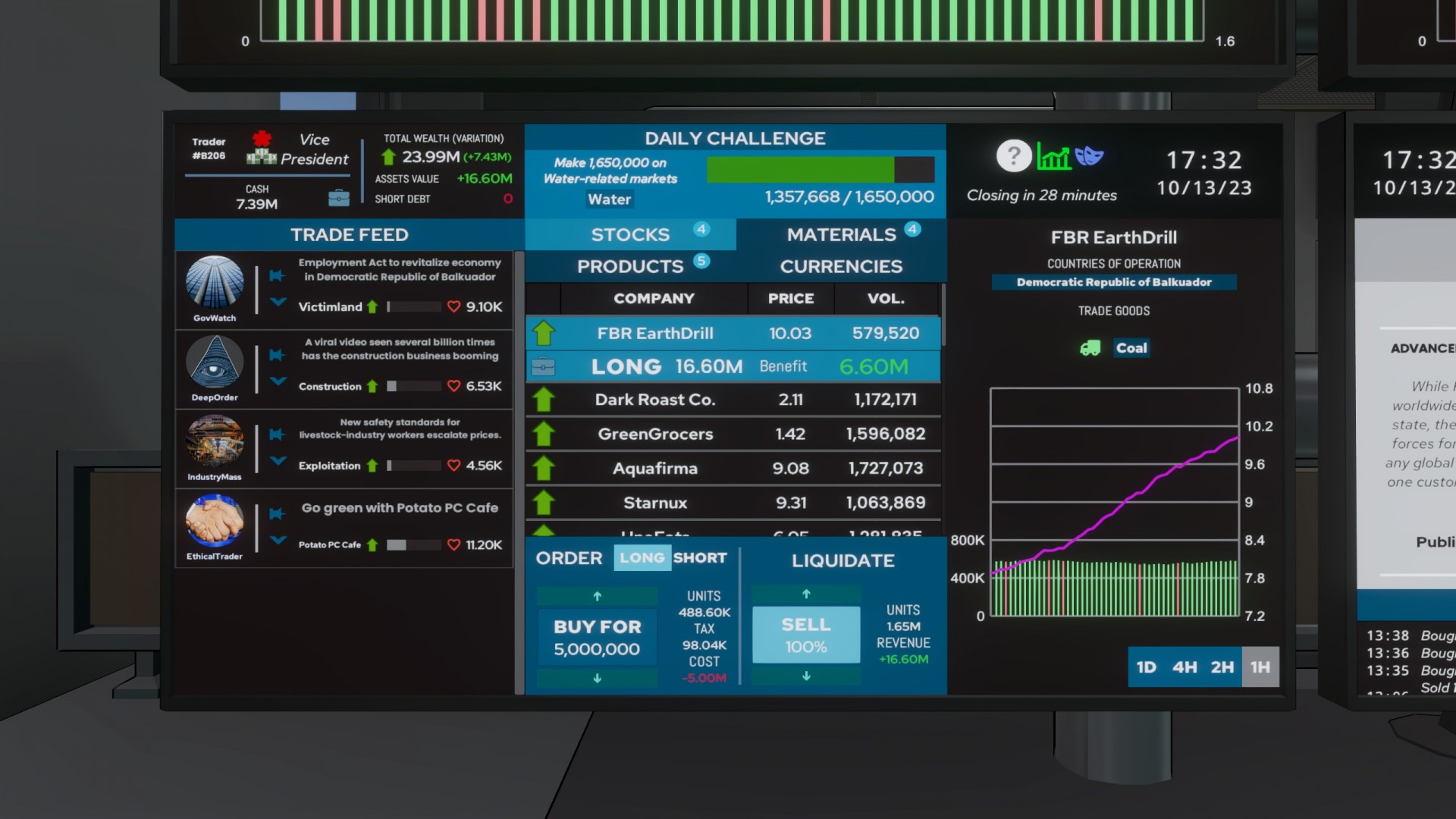 You have a few tricks up your sleeve to accommodate this. The left side of the trading platform has a Twitter-esque feed containing stock tips. These are not always accurate. You can ascertain their validity by seeing how many likes each tip gets, but you run the risk of buying stocks for more when you wait longer. Then you’ve got the aforementioned Geistnet, which offers insider information on what’s going to happen to certain stocks. Maybe the price of oil is going to tank, or coffee is going to become scarcer, causing the stock value of a coffee chain to shoot through the roof.