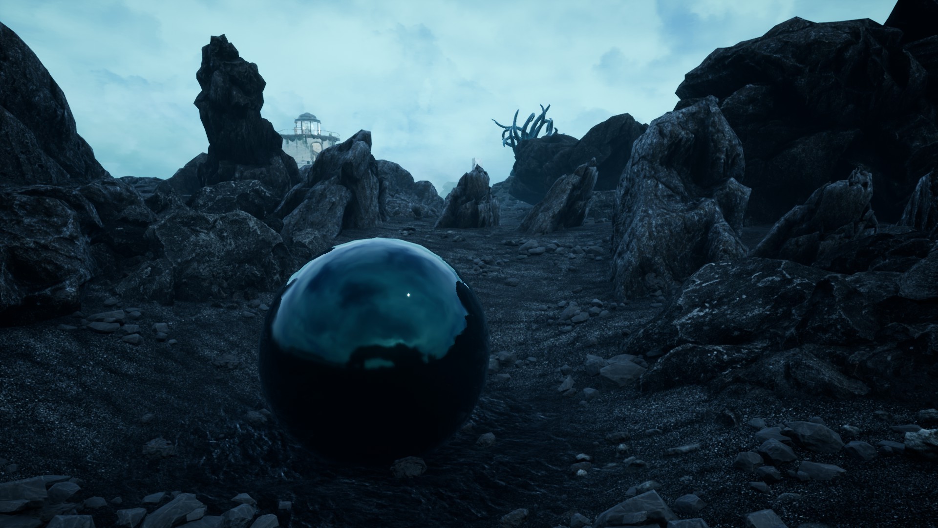 The Shore puts you in control of Andrew, a fisherman searching for his daughter on a strange island overrun with things that should not be. Black volcanic rock floods your vision as you walk past the wreckage of boats, their hulls broken and splintered on the shoreline. Seashells stare up at you from the ground and sea birds tend to their nests. A closer glance may show a black, featureless orb or monstrous, glowing meteorite. Something is very wrong with this island. In order to find his daughter, Andrew makes a deal with an eldritch abomination. The early part of the game is spent investigating the area around a lighthouse, finding documents and letters strewn about.