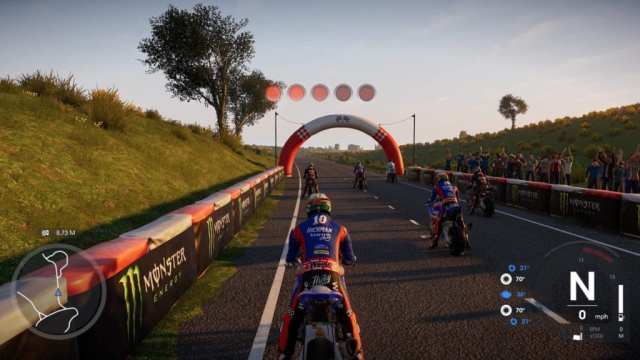 The bikes themselves are the star of the show in TT Isle of Man 2. The bike models themselves are gorgeous. On the other hand, the environmental graphics are a mixed bag. Like most racing games, the environmental graphics aren’t that great, but some parts of TT Isle of Man 2 really stick out. For example, when you’re taking tight turns in a quaint Irish village, you can’t help noticing all of the boxy, low-texture buildings. It contrasts with driving down the Irish coast at full speed, everything a blur, and a beautiful sunset over the ocean nearby.