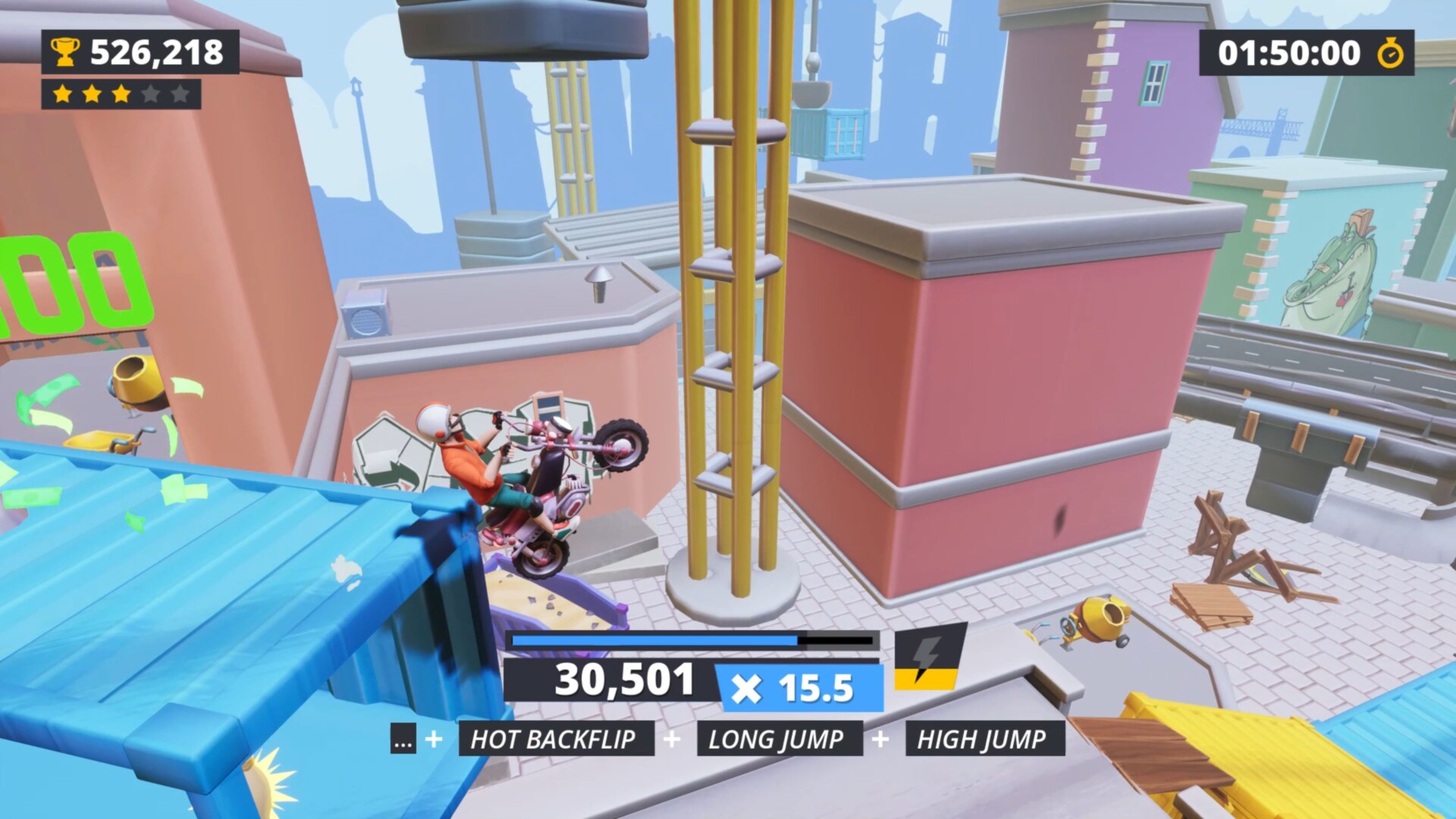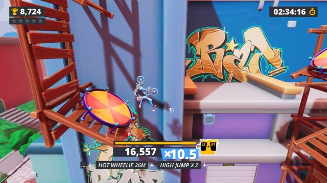 As I alluded to earlier, presentation is the focus and, in that respect, it does well for the series. Urban Trial Tricky runs beautifully in 4K at a blistering 60 fps. The more trick/skill-centric camera feels drawn in on the rider, making the character the focal point of the action. In retrospect, the increased dependency on trick missions makes total sense. Plus, it would be crucial to pad out the runtime.