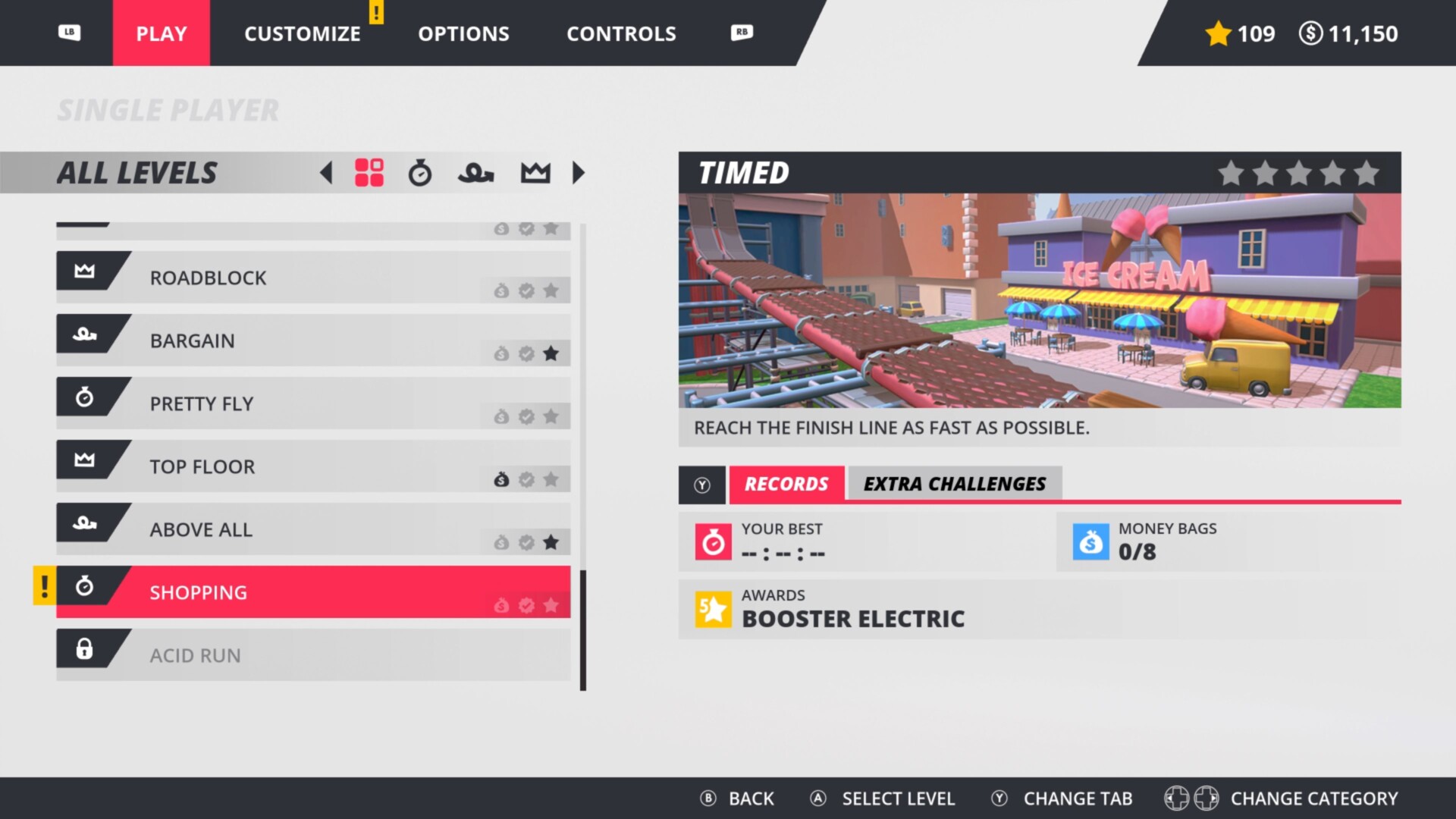 Repurposing the same handful of tracks across numerous missions must’ve been a boon for the development team. I mean, why not use the same locations to perform trick runs, mimicking challenges, and additional tutorials? Stages are laid out in a fashion where you almost need to platform your way over to the optimal sites to truly cement a solid run. Missions are sequenced in a way that forces you to understand the entire stage’s layout before you’d come around to the actual racing objective. This helped move the races along tremendously, yet I was only able to top the dev team thresholds once.