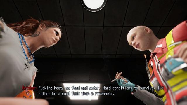 Stefanie Joosten from Metal Gear Solid V fame plays a supporting character here that mostly looks like her. The rest of the voice cast delivers their lines in stilted European accents. Stone’s voice actor is Swiss and doesn’t sound like she has any idea how to act in English. It’s all shockingly awful, save for Stefanie.