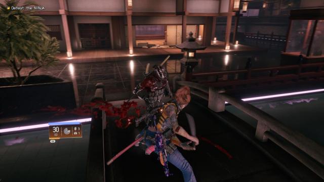 These two sections are so much harder than the rest of this game. For the fight against two ninjas, I had to spend some time perfecting my parrying abilities just to get through it. A section at the end of the third level ends with you fighting two heavies (insanely tanky enemies that take forever to die) on a cramped roof where there’s hardly any room to maneuver. After you beat them, you’re treated to a battle against a master assassin that was so easy I could hardly believe it. Even the last boss is only somewhat challenging. Almost all of the difficulty comes down to that one mob boss battle and the two other sections. It’s laughable.