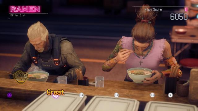 Aside from the campaign, there’s not really much else to do. When you’re not rolling through one of the game’s five missions, you’ll be doing awful, out-of-place mini-games such as rhythm-based ramen eating, karaoke, or playing a crane game for extra skill points. These crummy mini-games can be replayed in the police station or from the main menu, but most of them show up in the campaign proper.