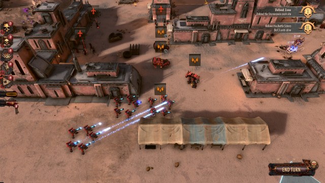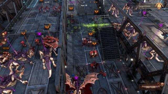 My greatest complaints when it comes to faction design are two-fold. First, Warhammer 40,000 is famous for allowing you to kit out units like you want. And while you can change the primary weapon for some of the units, that’s the end of customization. You don’t have sergeants leading the unit, and you don’t have special weapons mixed into the squad, which is a flaw that many TBS games carry. At least the lack of special weapons is understandable, as that’s how Primaris Marines operate on the tabletop (not that it’s any less dumb there).