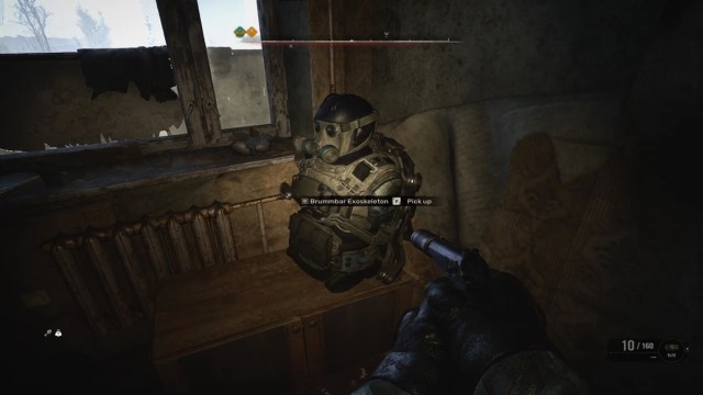 Once you arrive, you will need to do a bit of climbing. Enter through the courtyard and take the stairs to the 6th floor. Keep an eye out for some writing on the wall before you reach the hallway. The Brummbar Exoskeleton will be in the first room on your right.