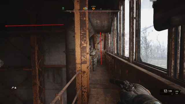 Inside the Arms Depot, you will encounter a Burer, a mutant known for its ability to control weapons. To proceed, you can either lure the Burer outside the depot or defeat it outright.