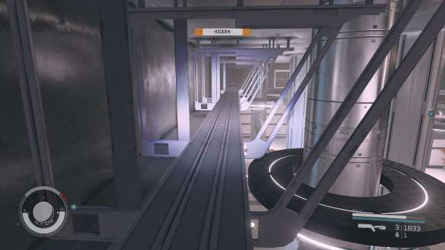 Here’s where things get a little semi-murderous. Head left, and you’ll be in a large, tech-oriented room. There will be one guard on the console to the left. And another guard at the top of the stairs to the left.