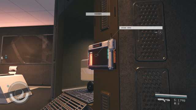 Enter the left room. You’ll see that there’s a terminal to your right. Interact with it, then start the Drone Demo program. This will distract the guards in the room to the left.