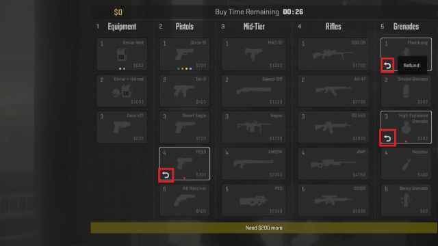If you start buying rapidly at the very start of the round, and your team calls an “eco” round after you’re done with your little shopping spree, you are no longer stuck with the inevitable deficit in your weapon budget for the next round. Here’s how to refund purchases in CS2.