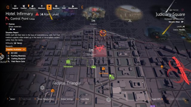 The solution for the prompt is to take over the Hotel Infirmary control point. The Hotel Infirmary control point can be found in the northernmost section of the Judiciary Square region. Simply defeat all enemies and defend the point to complete it. It can be done on any difficulty, so you can set the Global Settings to Normal difficulty from the map menu to finish it much quicker.