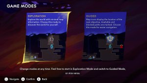 For players seeking the traditional Metroidvania experience, Exploration mode offers minimal map markers, allowing them to discover their next steps themselves. At any time, players can switch into Guided mode, which places icons on the map to assist in navigating them to their next main objective.