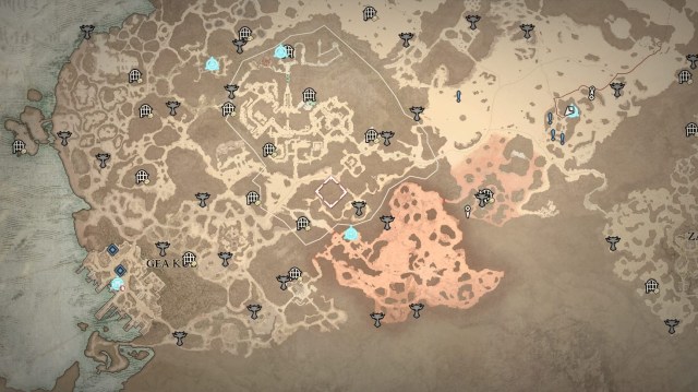 The southern part of Sanctuary has many areas that are blocked off by the campaign, and that’s true for Kehjistan in the southeast, too. I recommend you finish that before trying to grab all of these Altars. Also, there are three Altars located in the Fields of Hatred, the PvP area of Diablo, and 31 Altars in the area in total.