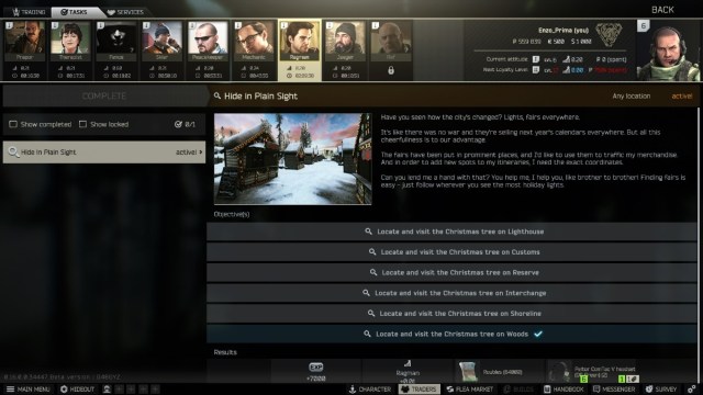 The Hide in Plain Sight quest is immediately available at the event’s start. You can accept the task from Ragman, and you’ll need to visit all six Christmas Tree locations on these maps: