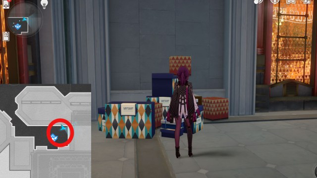 Behind the Shape of Ire world boss, hidden inside a few boxes.