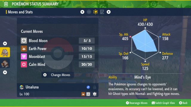 Mind’s Eye is an all-new Ability that is exclusive to Bloodmoon Ursaluna. The main effect of this Ability is that it allows the Pokémon’s Normal- and Fighting-type attacks to damage Ghost-type enemies. On top of that, Pokémon with Mind’s Eye can’t have their accuracy lowered and get to ignore the changes to opposing Pokémon’s evasion. Accuracy-reducing moves aren’t all that common in competitive play, but getting to ignore evasion increases is always a nice bonus effect to have.