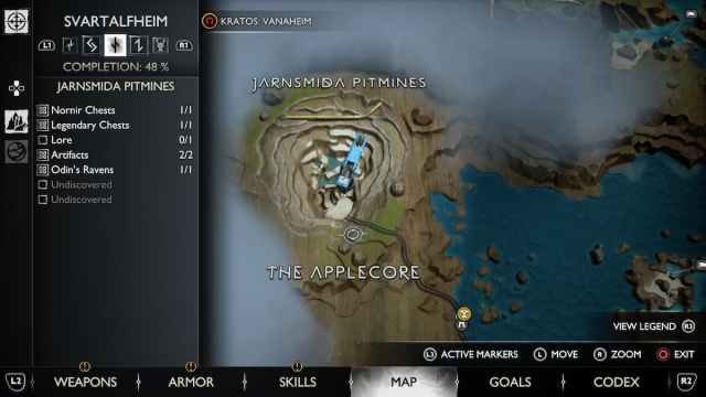 You’ll have access to the following Draugr Pit location in Alfheim when you make it to The Barrens after freeing the screaming animal. The sandstorm will die down, and you’ll be able to access the Draugr pit on the small island at the bottom left of the map.