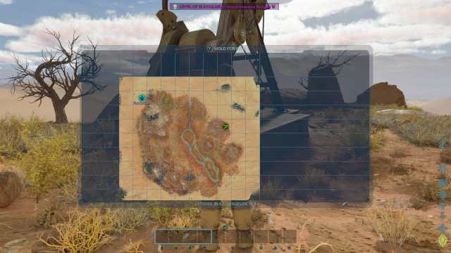 The first set of coordinates will take you into the dunes, on the east side of the map. If you don’t mind risking the heat and possible Deathworms, this oil vein is not all that far from a possible spawn point, and it’s easy to find, as it’s surrounded by trees.