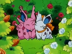 The following Pokemon are related to one another due to the fact that they can make Eggs of each other when breeding. In other words, when the female Pokemon is bred with another Pokemon, the Egg may be of its species or the related male Pokemon’s species. When the male Pokemon is bred with a Ditto, the resulting Egg may be of its species or the related female Pokemon’s species. As such, they’re not so much “split evolutions” as they are “split Egg possibilities.”