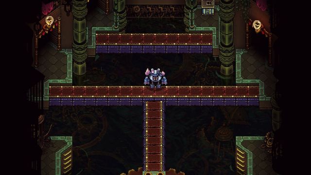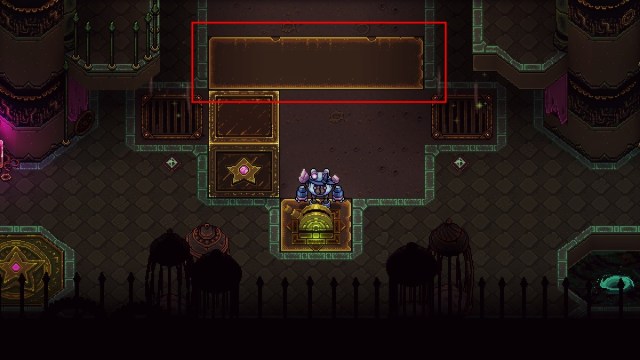 In this area, you’ll see three vents in the center of the room – one on top and one on each side. Before interacting with any of these, you can go up to the second level on the left side of the room using the vents. Keep going and you’ll see a room with a star symbol on top. Go inside, fight your first enemy, and interact with the object inside.