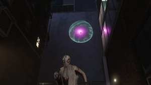 On the darker part of the building, you’ll see the purple Spiderbot crawling.