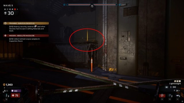 Once in the inspection room, the first tainted corpse sample is on the dead body on the second floor near the shuttle. The rest of the tainted corpse samples should be in the same room, so you don’t have to worry about going around the map. While on the second floor, make sure to destroy all the cameras to get resources like Electrical Parts or Scrap Metal for your crafting needs.