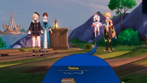 Doesn’t make sense, right? Actually it does. We’re in Fontaine, remember? A region inspired by France. Yup, Thelxie’s speaking in French! “Cava?” is actually “Ça va?”, a phrase popularly used as a greeting. Thelxie’s basically saying “How are you?” here, which is fitting for the situation.