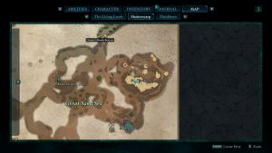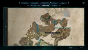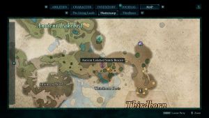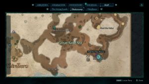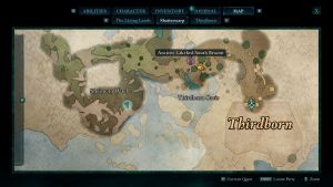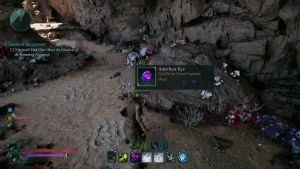 The Amethyst Eye is located in the Ancient Lakebed, just northwest of the Thirdborn city. Head to the mid-sized lake underneath the name on the map and stay towards the east side underneath the cave overhang. Players will eventually come across a small gravesite and the Amethyst Eye sitting out in the open.