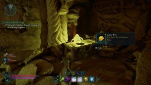 The Agate Eye is located at the Sand Sea Ruins in eastern Shatterscarp, which is south of the Shark’s Teeth area. Enter from the north side of the ruins and climb around until coming upon a circular building.