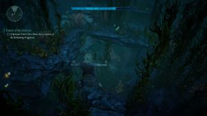 Swim underwater until coming to a large room. Defeat any enemies inside, then climb up to the next level using the pile of crates to the left side. Walk up the stairs and turn left to find a narrow hallway lit with green light. The passage will take players to the Topaz Eye piece sitting on a table above a corpse.