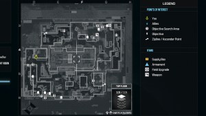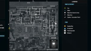 Players do not actually start on the first floor and will have to parachute down into the courtyard from above. There are two that can be easily grabbed, while the other two are locked by stuck doors. This requires jumping down the stairways down to the bottom floor on both sides to bypass the doors. Here are the four items for this floor: