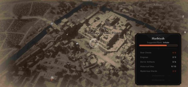 Damascus Gate Prison is located north of the Round City’s viewpoint in Assassin’s Creed Mirage. It is also close to other landmarks or historical sites, such as the Great Mosque (east of the Damascus Gate Prison) and the Metal Factory in Shari’ (west of the Damascus Gate Prison), located near the Upper Harbor.