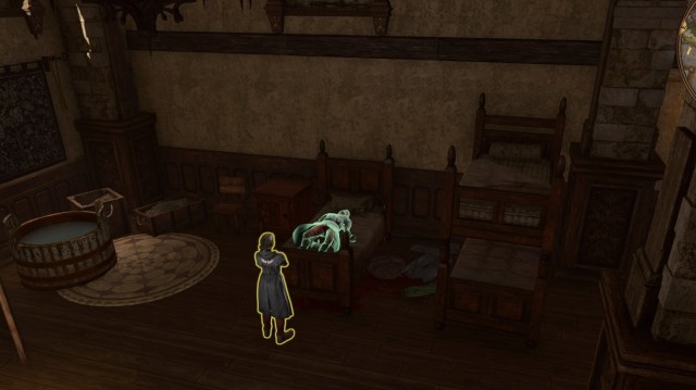 But before you go, approach the bed for a perception check, followed by an investigation check. If you pass, you’ll get another Key with a Flower Motif. Though, that doesn’t have much bearing on this particular quest.