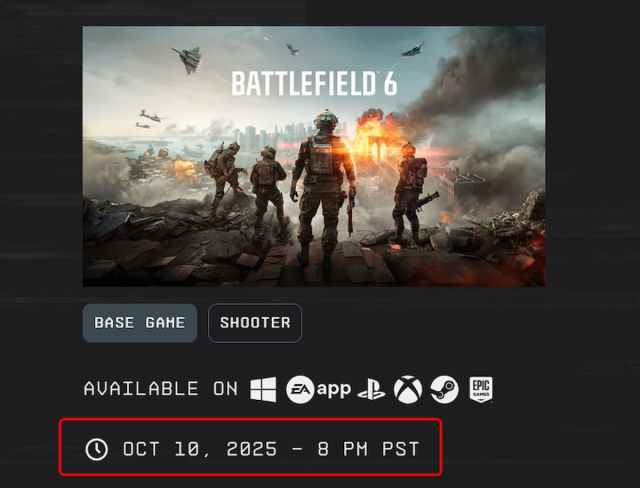 Battlefield 6 launches on PC and consoles on October 10 or October 11, 2025, at 8 PM PDT, depending on your region. Based on the pre-order page, it seems to be a global launch, and I’ve set up a timer for its release: