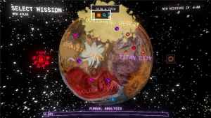 First things first, Mycopunk has a very specific look, and I’m not talking about the art, because that’s perfect. I’m talking about how the menus have intentional distortion and wrapping. I find the distortion and bloom a bit much, especially when the actual game has sharp visual clarity. Thankfully, you can turn both of these down quite a bit to improve your user experience.
