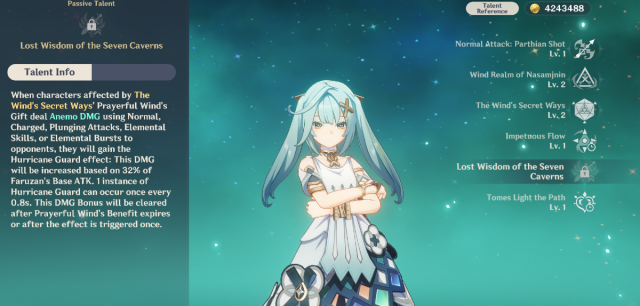 Lost Wisdom of the Seven Caverns unlocks at Faruzan’s Phase 4 Ascension and will boost the character’s damage done by Normal Attacks, Charged Attacks, Elemental Skills, and Elemental Bursts. While the Wind’s Secret Ways Polyhedron rotates around the field, it will give your characters their buff as well as the Hurricane Guard effect that will boost the damage dealt by 32 percent of Faruzan’s base attack. This is why choosing the weapon will become so important.