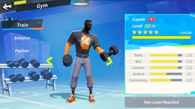 If you are looking to play Clint Capela as your main center player, you’ll want to focus on maxing out his level to 50 using those drill cards. Leveling boosts all the important stats, so head to the gym and train Capela first.