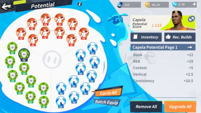 The potentials you want to equip and upgrade are Airborne Ace (Dunk, Reb, Vertical), Anchor (Reb, Consistency), and Lockdown D (Reb, Contest).