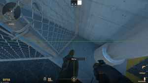 If you are around Silo and want to help your team push Outside, you can smoke outside Heaven, on the Catwalk behind it, to deter CT snipers from even trying to defend from that position. It’s an effortless smoke to learn, and you don’t even need a jump throw for it. Just jump between the tube and the Silo, like in picture 1, and align your crosshair with the 2nd rail so that the bottom axis of your crosshair is aligned with the 2nd “rib” line from the left rail bar while you are standing up. Yeah, I know, the explanation is as weird as it gets, but worry not, this isn’t a Wile E. Coyote contraption. There is a saying that a picture means a thousand words, so here are two thousand words for you to read: