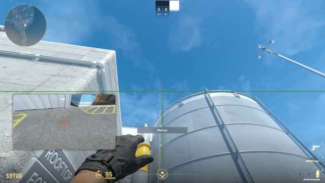 After this is done, jump throw the smoke. You can see the mark where it will land in the corner of the image. Pretty neat, huh?