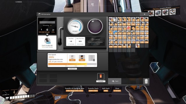 This makes things extremely tricky because you won’t have enough overclocking or slugs to reach 250% at every Oil node you encounter. You’ll eventually start your production without the overclocking in mind, and the only way to change that is to redo the whole setup once you have overclocking up.