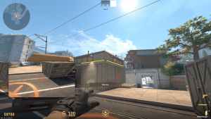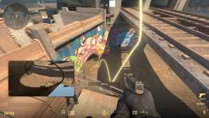 Then, you should line up your crosshair with the top edge of the crate and the left edge of the handle area. Use a jump throw and that’s it. As you can see, microscopic adjustments impact this smoke greatly, so practice it well so that you don’t miss the train tracks.