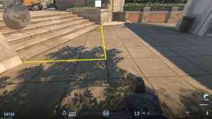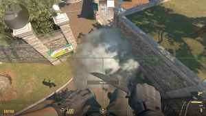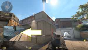 If you want this smoke to be deployed faster (due to timing reasons), place your crosshair at the bottom of the yellow line, where two buildings meet. - Step 3: Throw the Smoke without moving, and see the results.