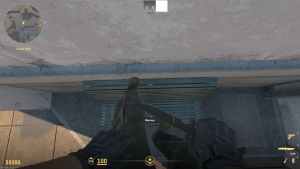 I’ve found the most cartoonishly evil smoke spot for CTs that’s really easy to learn. It blocks off the T side of Monster and starts emitting smoke just as they approach. Combine this smoke with the tube/pipe smoke shown above and you’ve effectively blocked the push from that direction and that leaves only the connector as a viable point of breach for B site. It’s VERY difficult to hit. You need to push yourself in the corner at the CT Spawn: