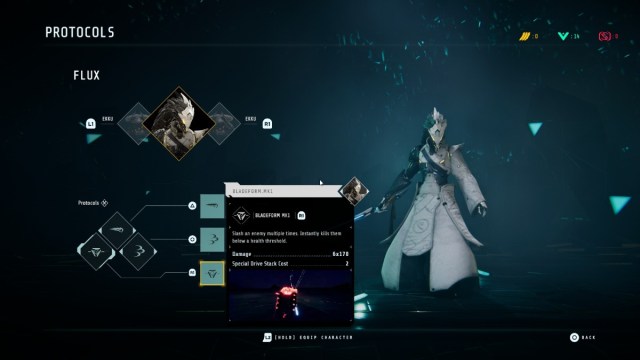 Bladeform – Slash an enemy multiple times. Instantly kills them below a health threshold.