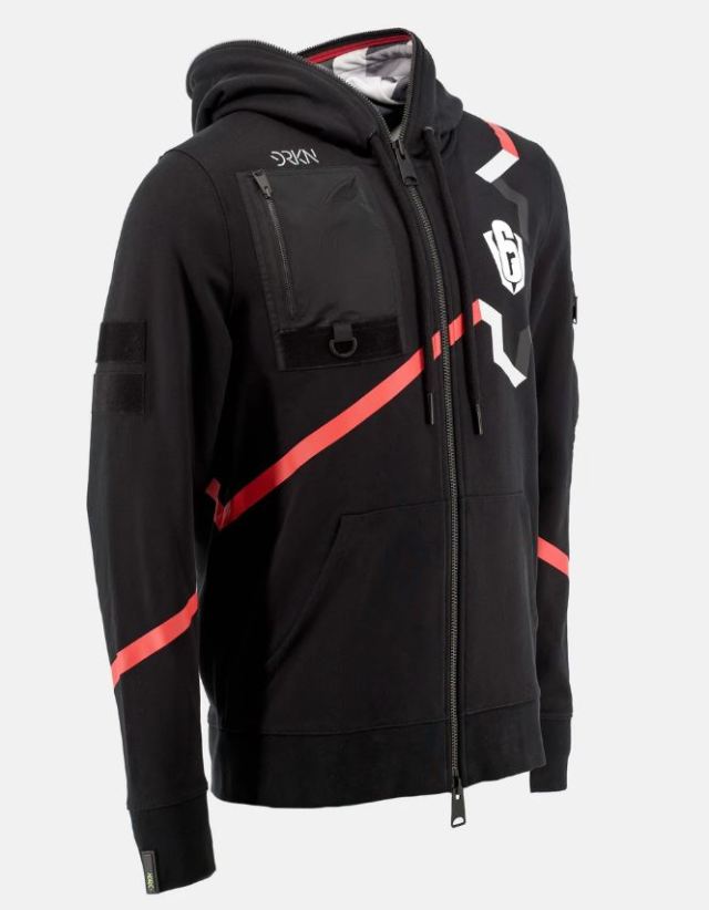 DRKN released a full zip hood to celebrate the Rainbow Six Siege Invitational 2022. The purchase itself also includes some digital goodies for the Operator Hibana. An NFC reader on the sleeve allows you to get the flagship bundle by scanning it. If you’re interested it’s going to cost you a cool $120 plus tax.