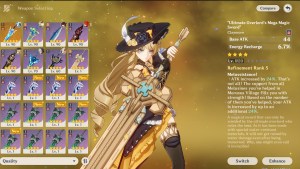 Her signature weapon and the best one you can give her, by far. It has extra Critical Rate, which helps immensely with her stat needs and lets her focus on more Crit DMG. Since it was made for her, the passive will always be active and gives her an ever bigger bursting potential. Unfortunately, it’s Gacha-locked and only available whenever she’s on the banners, so you’ll need some luck for that.